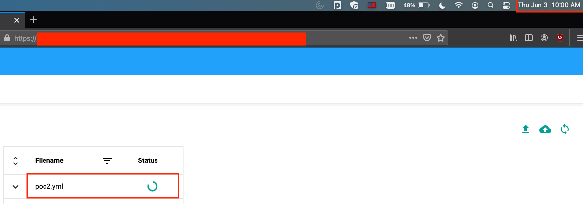 When I uploaded the above YAML file, the status icon was in the loading animation for 10 minutes confirming the sleep command ran successfully.