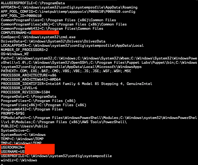 Listed below is an example payload in the PoC that was used to serialize a SortedSet object with a command to retrieve environment variables, AWS keys, and the AWS EC2 user data that contained plaintext credentials: