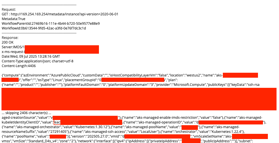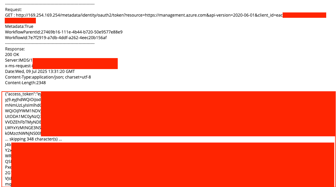 While attempting to retrieve the Azure access token, I encountered errors indicating a client ID was required. Using the client ID obtained from the instance metadata, I was able to retrieve a partial access token—but it wasn’t sufficient to demonstrate meaningful impact.