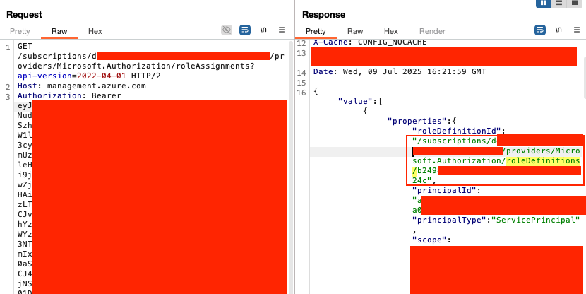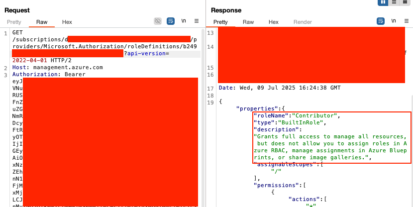 After retrieving the full access token, I wanted to determine what permissions were assigned to it. This was my first successful Azure SSRF, as access is typically blocked due to the required Metadata request header.